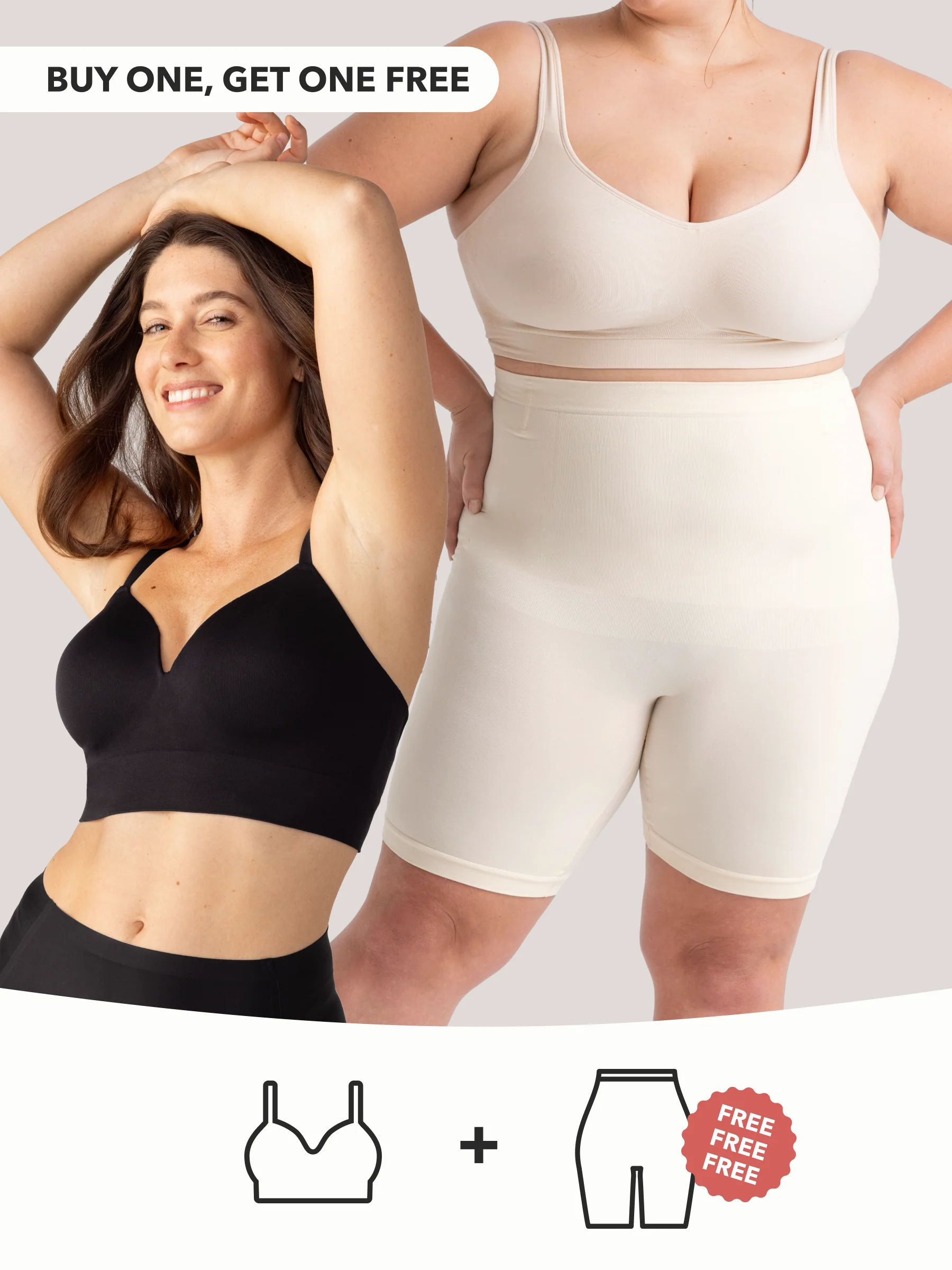> Buy 1, Get 1 FREE: 1 Supportive Bra + 1 FREE High-Waisted Shaper Shorts